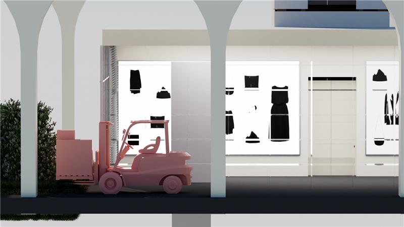 Located adjacent to the Prada Distribution Centre in Arezzo, the design proposes a 50,000 m² “post-production” landscape focused on upcycling. By dissolving the boundaries between “front-of-house” display and “back-of-house” labor , the project intertwines micro-factories, ateliers, and runways into a simultaneous ecosystem. The design process utilized a cinematic, non-linear workflow in Cinema 4D to simulate complex interactions between human craft, robotic systems, and spatial storytelling